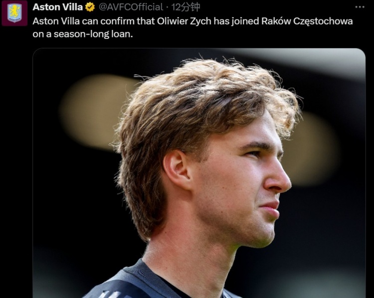 7月15日訊 阿斯頓維拉官方宣布,21歲門將齊赫租借加盟波蘭球隊(duì)琴斯托霍瓦,租期一年。