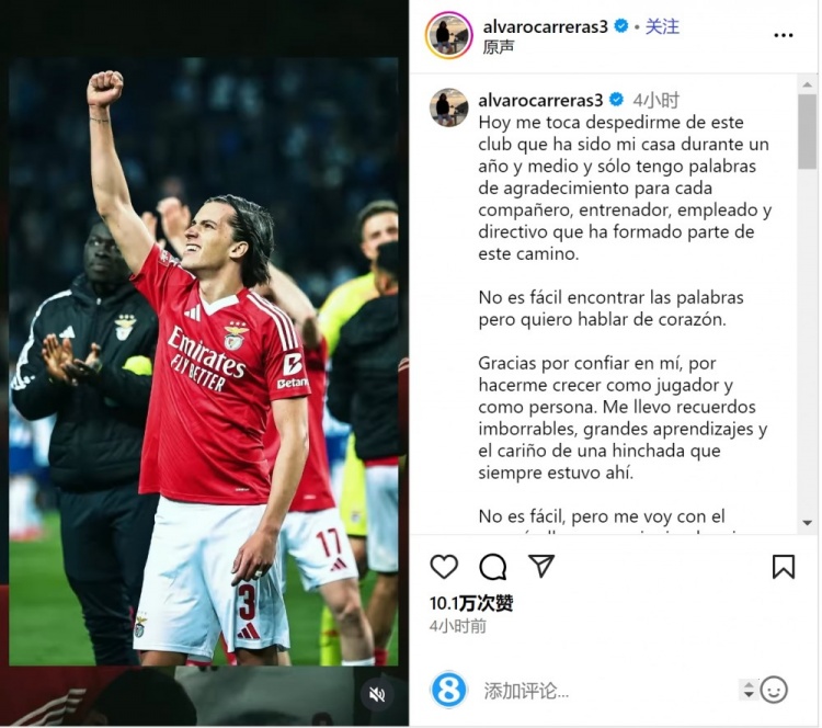 A費在社交媒體上發(fā)文,與本菲卡告別:“今天,我不得不告別這個在過去一年半的時間里如同家一般的俱樂部。我只想對每一位隊友、教練、員工和管理層成員表達最深切的感謝,感謝你們陪伴我走過這段旅程。