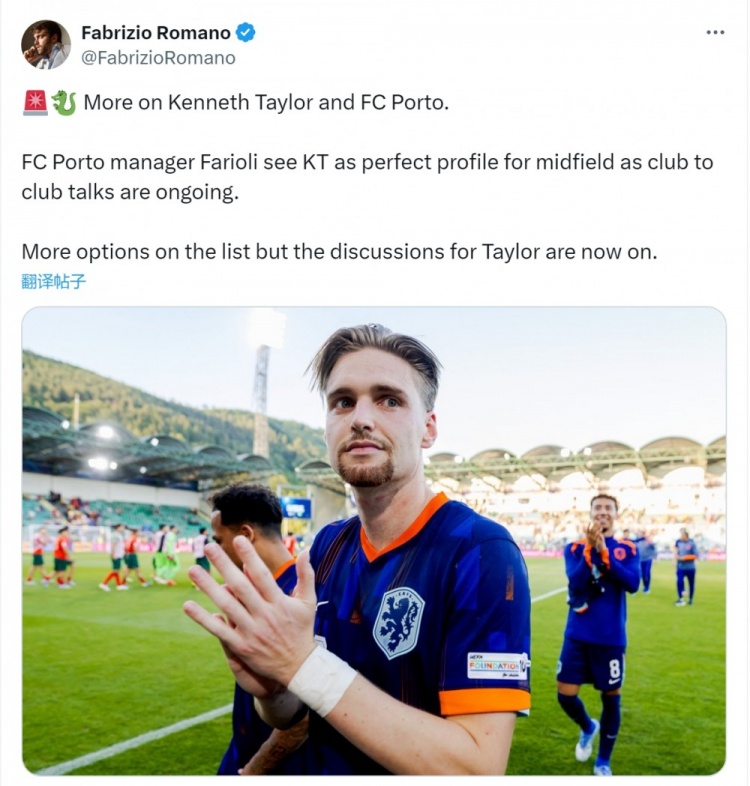 波爾圖中場引援名單中還有更多人選,但目前泰勒的轉(zhuǎn)會正在磋商之中。