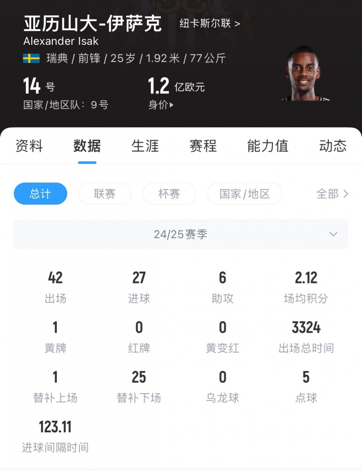 事實(shí)上,消息中透露的利物浦詢價(jià)額(1.2億英鎊)遠(yuǎn)低于紐卡對(duì)伊薩克的估價(jià)(超1.5億英鎊),這表明這將是一場(chǎng)曠日持久的轉(zhuǎn)會(huì)戰(zhàn)。