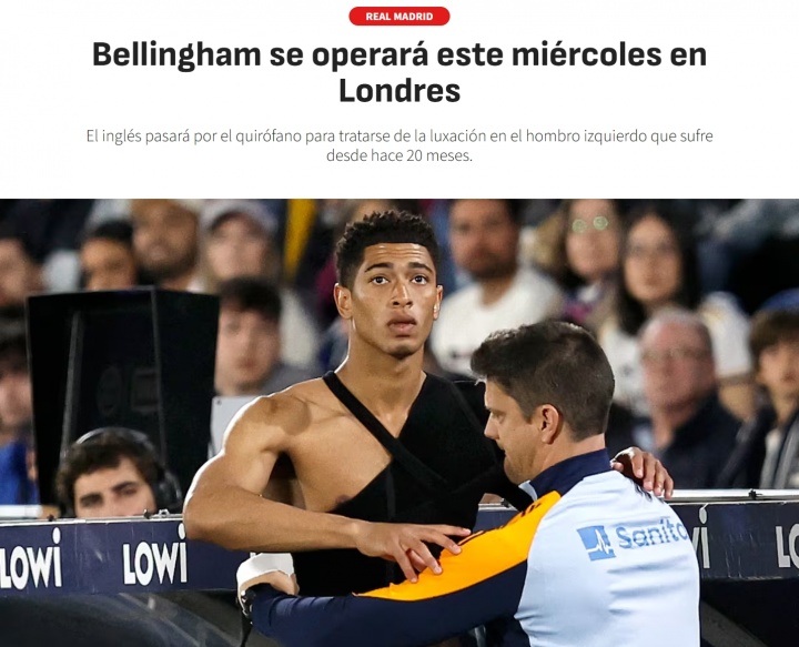 貝林厄姆的肩傷始于2023年11月5日,當(dāng)時(shí)他在西甲對陣巴列卡諾的比賽中摔倒,導(dǎo)致左肩脫臼,此后他一直佩戴著護(hù)具出戰(zhàn)。去年9月,貝林厄姆在對陣西班牙人的比賽中肩膀再次受傷,但仍一直帶傷作戰(zhàn)至今。