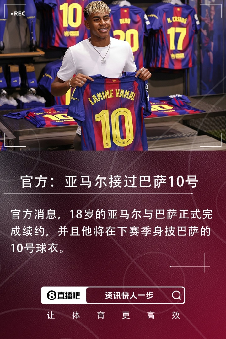 官方消息,18歲的亞馬爾與巴薩正式完成續(xù)約,并且他將接過巴薩傳奇般的10號球衣。