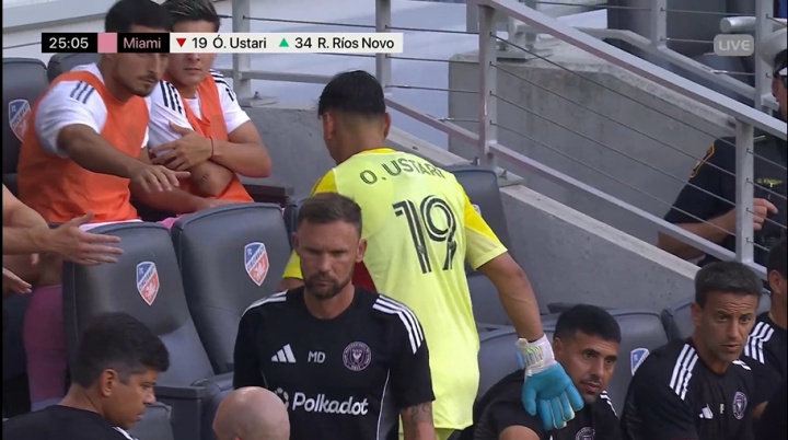 邁阿密門(mén)將烏斯塔里出擊拉傷,第25分鐘被替補(bǔ)門(mén)將諾沃替換下場(chǎng)