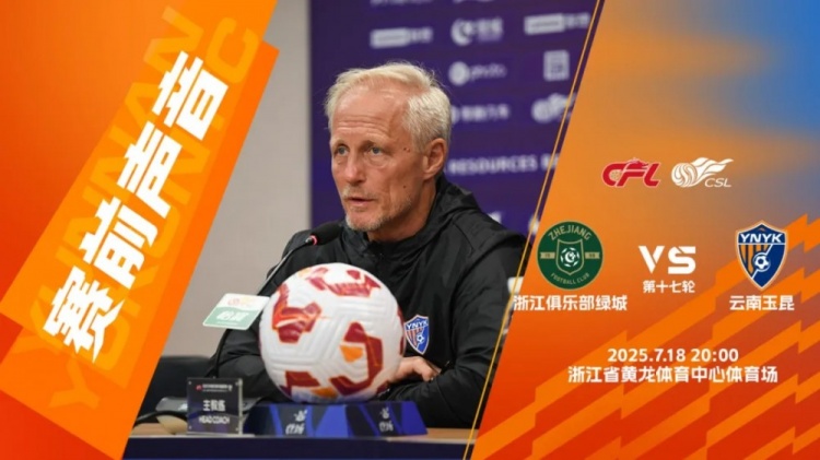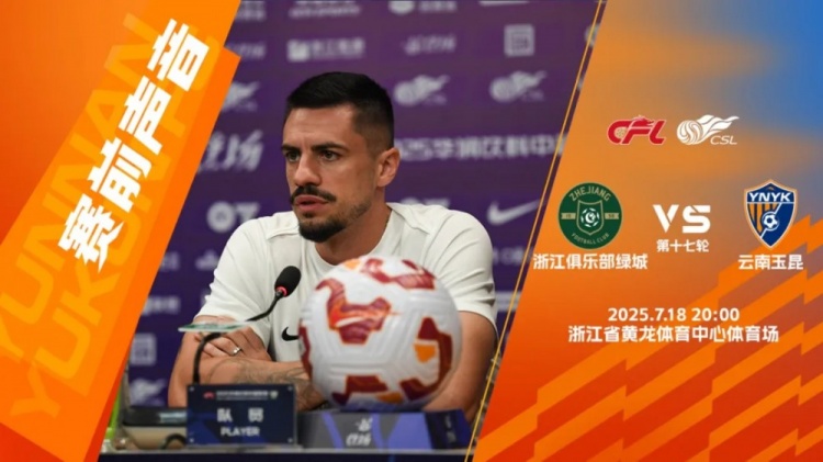 北京時(shí)間2025年7月18日20點(diǎn)00分,浙江省黃龍?bào)w育中心體育場(chǎng),云南玉昆將與浙江俱樂(lè)部綠城進(jìn)行中超聯(lián)賽第十七輪比賽。