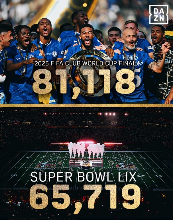 2025年世俱杯落下帷幕,切爾西決賽3-0擊敗巴黎奪冠,本場比賽在新澤西大都會人壽體育場進行,觀眾人數(shù)為81118人,而這座體育場的容量為82500人。