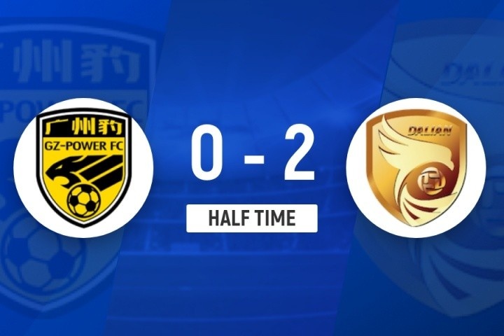 傷停補時6分鐘。上半場比賽結(jié)束,廣州豹0-2大連鯤城。