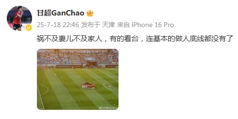 在遭受到看臺上的一些攻擊性言論后,韋世豪情緒激動地與球迷發(fā)生對峙。比賽結束后,蓉城隊球員甘超也在微博中表示“禍不及妻兒不及家人,有的看臺,連基本的做人底線都沒有了”。