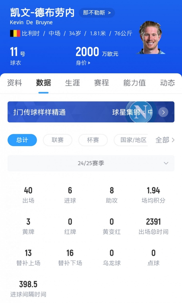 “德布勞內加入了一支對自身強大實力有認知的球隊,兩個月前他們贏得了意甲冠軍,這就是證明。德布勞內不僅能帶來豐富的經驗,還有不容置疑的天賦,年齡也不會削弱他的能力?!?/p>