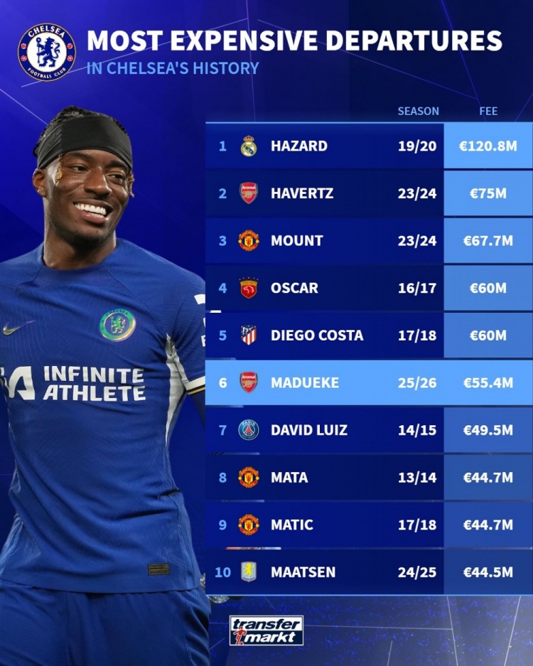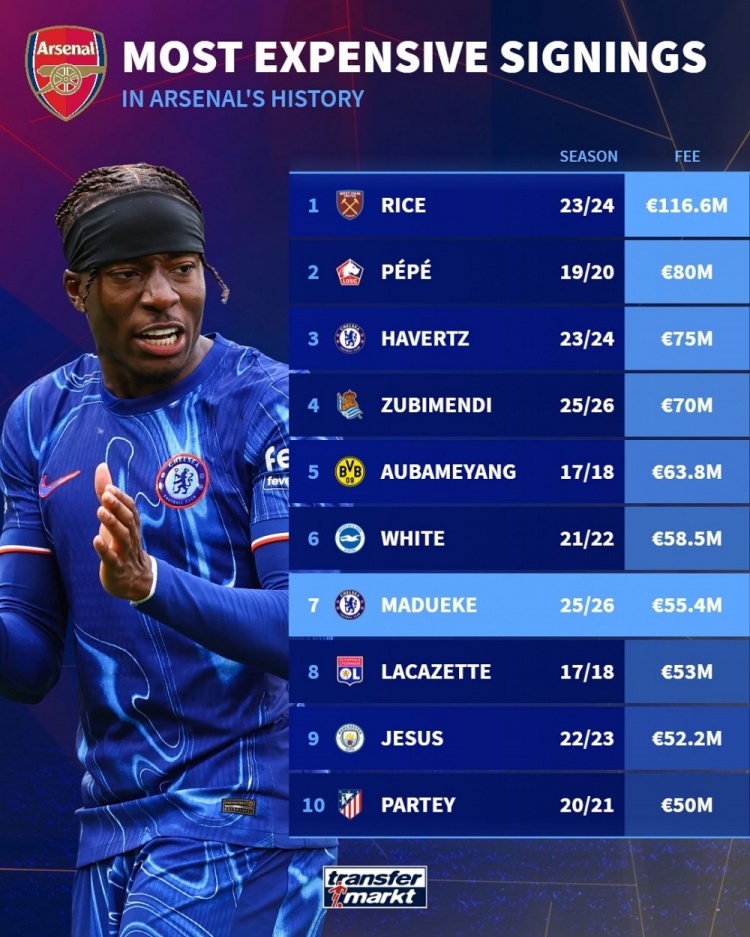 7月19日訊 德國(guó)轉(zhuǎn)會(huì)市場(chǎng)統(tǒng)計(jì)表明,馬杜埃凱是阿森納隊(duì)史第7貴的引援,同時(shí)也是切爾西隊(duì)史第6貴的轉(zhuǎn)出球員。