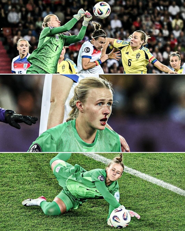7月19日訊 女足歐洲杯1/4淘汰賽,英格蘭點球大戰(zhàn)3-2戰(zhàn)勝瑞典晉級四強。24歲的英格蘭門將漢娜-漢普頓在鼻子受傷的情況下兩次撲點,幫助球隊贏得點球大戰(zhàn)。