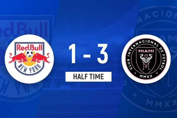 傷停補(bǔ)時(shí)5分鐘。上半場比賽結(jié)束,紐約紅牛1-3邁阿密國際。