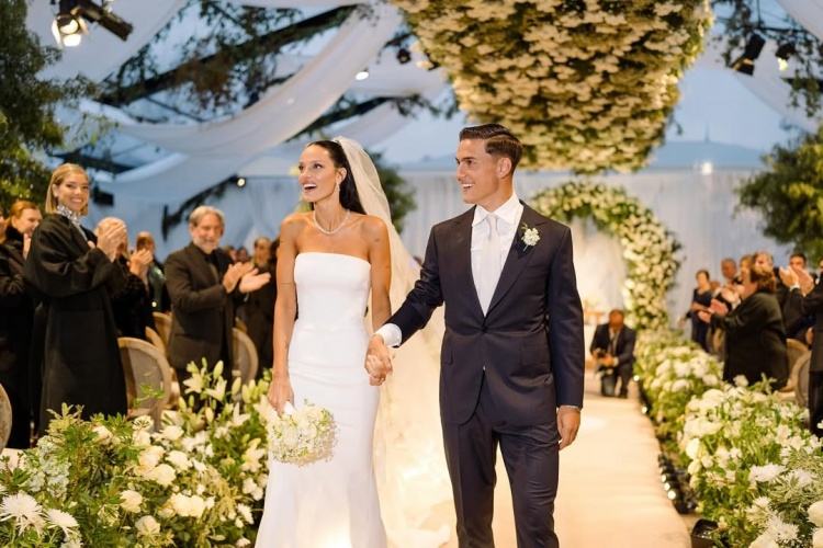 7月20日訊 今天是迪巴拉與妻子結(jié)婚一周年紀念日,迪巴拉更新社交媒體曬出當天的婚禮照,并配文向妻子表達愛意。