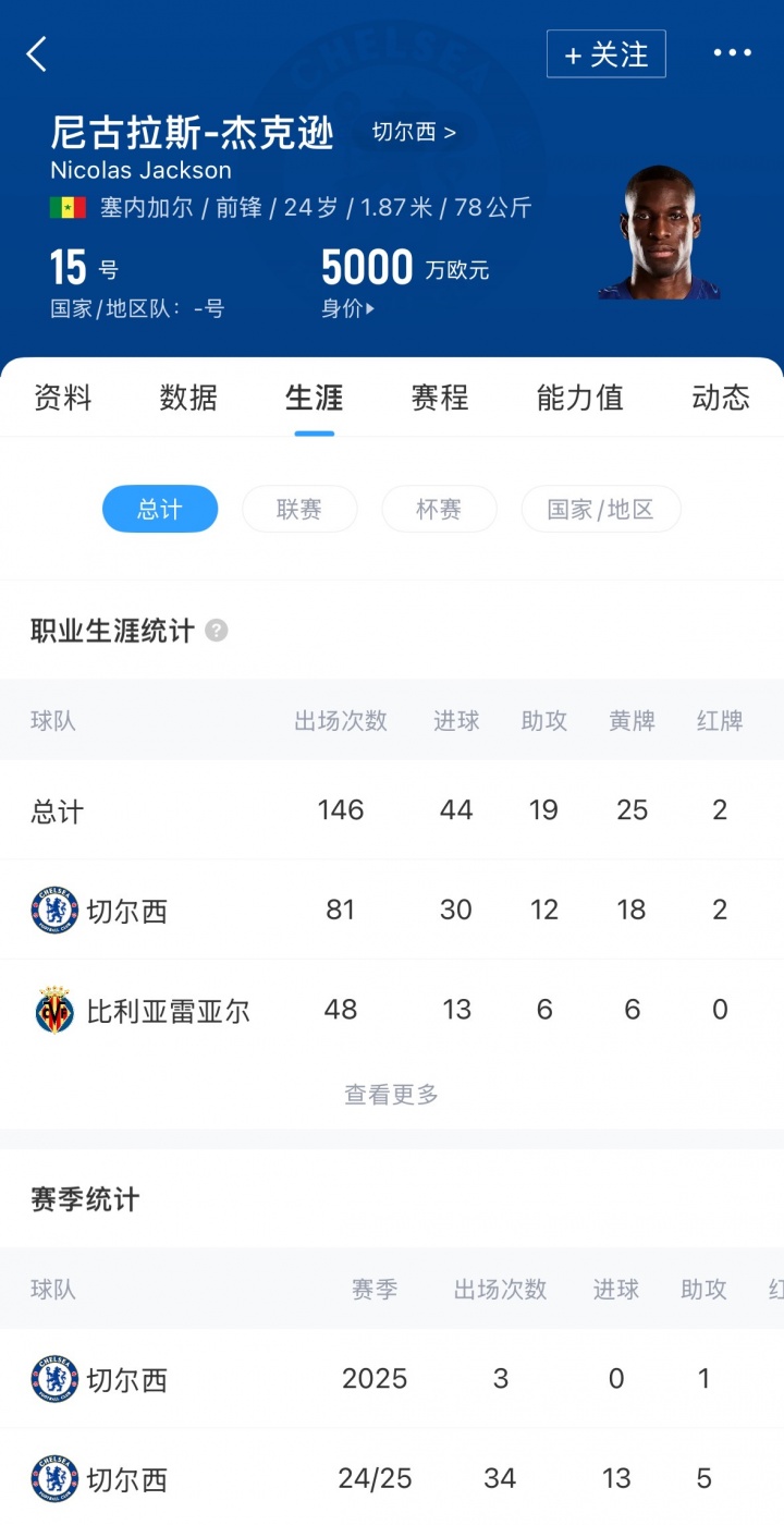 報道稱,切爾西方面沒有出售杰克遜的壓力,球員與藍軍合同還剩8年。許多英超以及歐洲球隊,還有沙特球隊都有興趣在今夏簽下杰克遜。