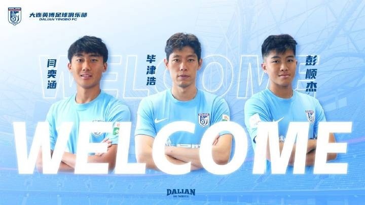 7月22日訊 官方消息,大連英博租借山東泰山后衛(wèi)畢津浩,簽下上海申花中場(chǎng)閆奕涵,U19梯隊(duì)球員彭順杰上調(diào)至一線隊(duì)。