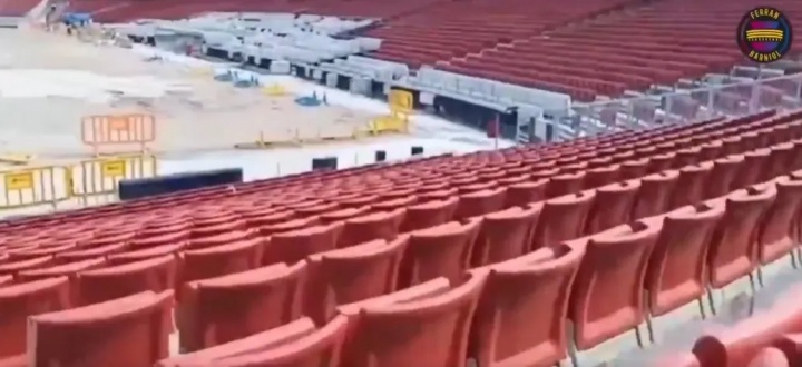視頻中諾坎普球場區(qū)域一片干枯,草皮蕩然無存,四周環(huán)繞著裸露的混凝土,關(guān)鍵設(shè)施嚴(yán)重缺失。在體育場內(nèi)部,電線從天花板上垂落,建筑材料散亂堆放在走廊里??諘绲耐ǖ肋h(yuǎn)未完工,衛(wèi)生間區(qū)域幾乎未見施工痕跡。