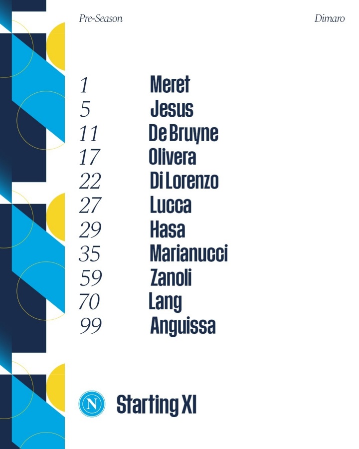 7月22日訊 那不勒斯即將在友誼賽對陣阿雷索,球隊首發(fā)陣容中德布勞內(nèi)在列。以下為球隊具體首發(fā):
