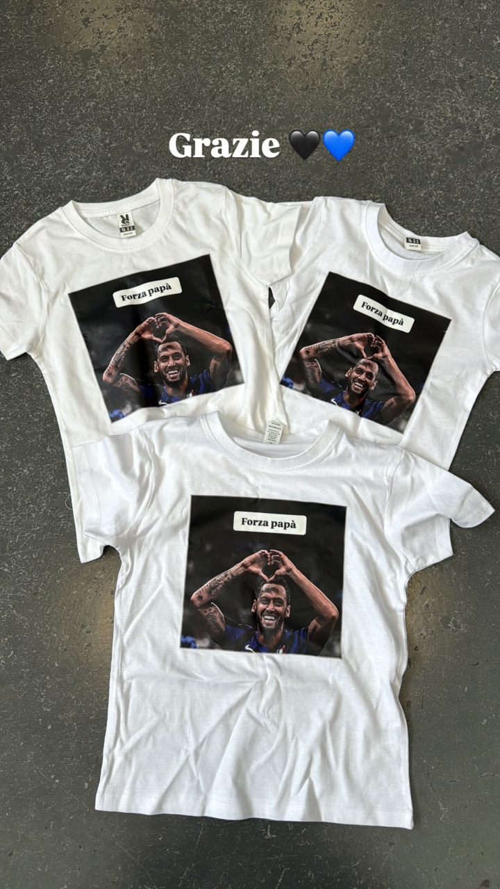 恰爾汗奧盧的第三個孩子于2023年出生,照片上的三件小碼T恤對應(yīng)著恰爾汗奧盧的三個孩子,同時T恤上用意大利語寫著“爸爸加油”,配圖是恰爾汗奧盧身穿國米球衣時手比愛心。
