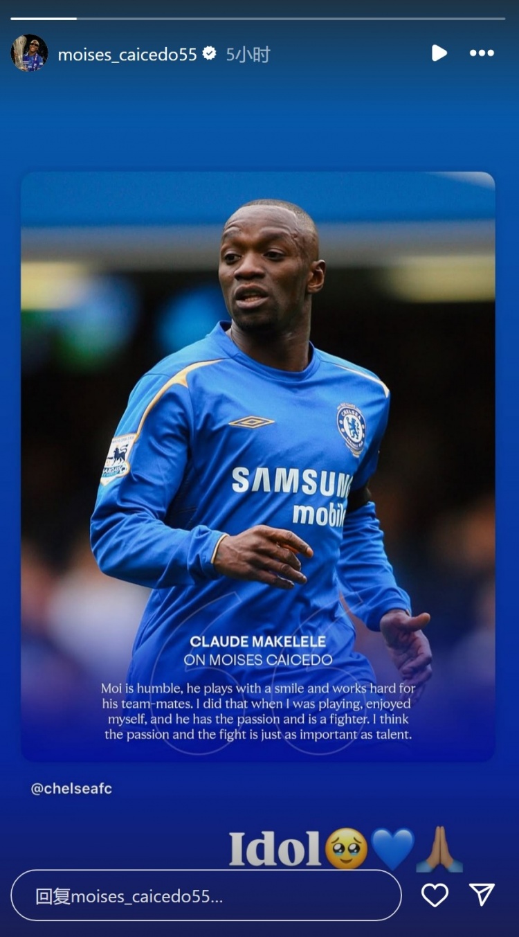 7月26日訊 切爾西中場(chǎng)凱塞多更新社媒,轉(zhuǎn)發(fā)馬克萊萊稱贊他的動(dòng)態(tài)。