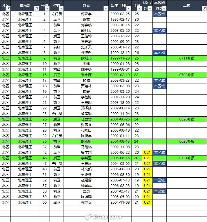 2025中乙聯(lián)賽(北區(qū))夏轉(zhuǎn)后各隊報名名單(綠色為夏轉(zhuǎn)新報名球員) ???