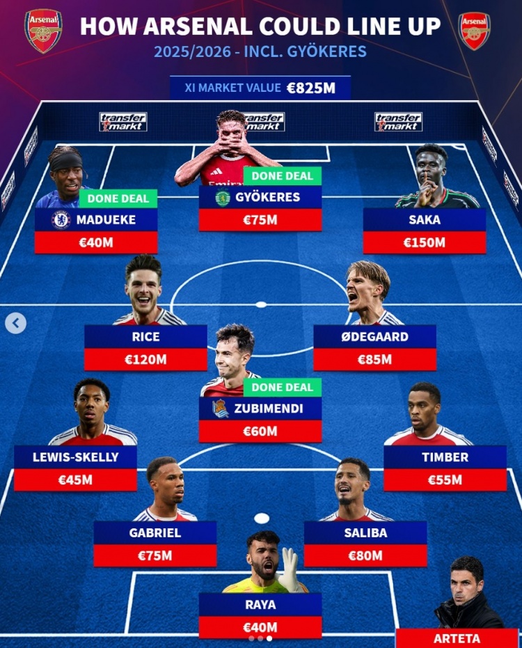 7月27日訊 阿森納已經官宣簽下瑞典中鋒約克雷斯,《轉會市場》也據此預測了阿森納新賽季主力陣容,三名新援在列。