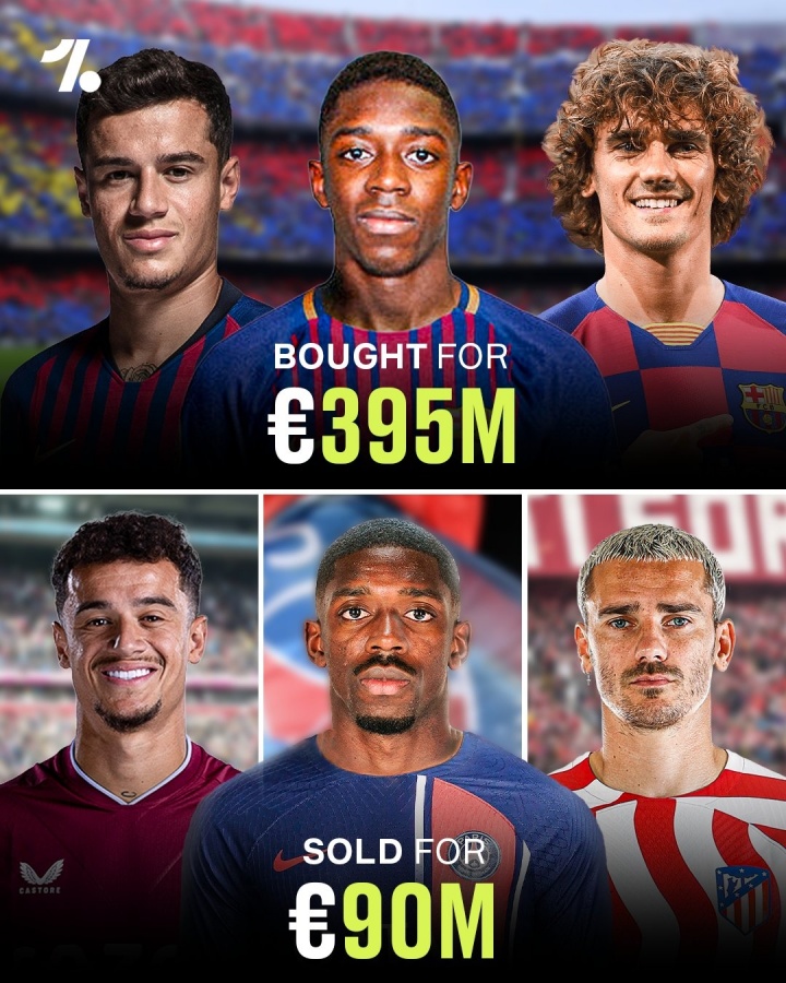 巴薩如今陷入財(cái)務(wù)狀況不佳的窘境,與當(dāng)年在轉(zhuǎn)會(huì)市場(chǎng)上的操作也有很大關(guān)系。登貝萊、庫蒂尼奧和格列茲曼3人的轉(zhuǎn)會(huì)差價(jià),就讓巴薩巨虧3億歐。