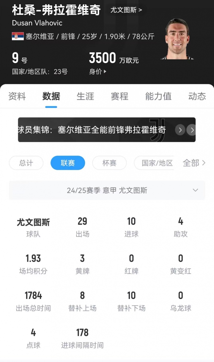 據(jù)悉,現(xiàn)年25歲的弗拉霍維奇很有可能在今夏離開(kāi)尤文,而米蘭是球員的潛在下家。球員上賽季為尤文在意甲出場(chǎng)29次,貢獻(xiàn)10球4助攻。他與尤文的合同將于明年到期,目前身價(jià)為3500萬(wàn)歐元。