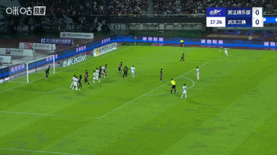比賽第38分鐘,三鎮(zhèn)右路任意球開出,浙江禁區(qū)內(nèi)一片混亂,紹爾后插上抽射破門,三鎮(zhèn)客場1-0領(lǐng)先!
