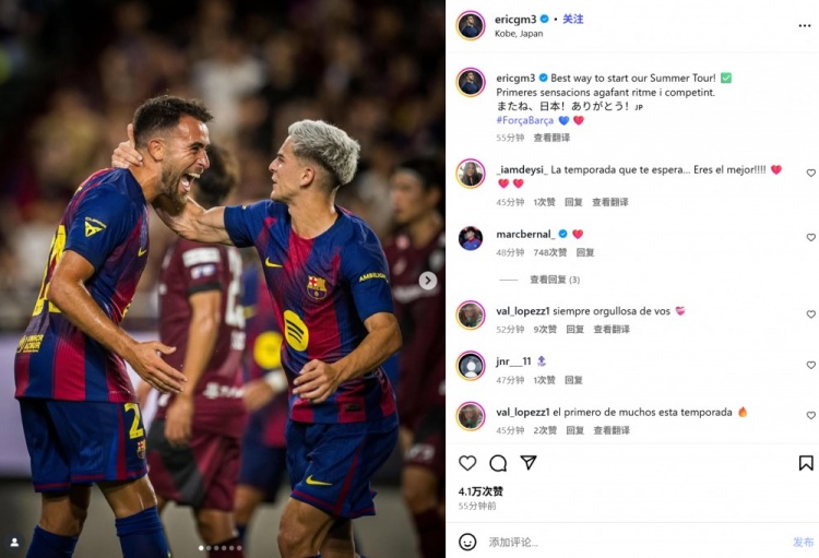 他也在賽后通過社媒曬出自己的慶祝照,并配文:“開啟夏季巡回賽的最佳方式!?逐漸找回比賽狀態(tài)。#巴薩加油”