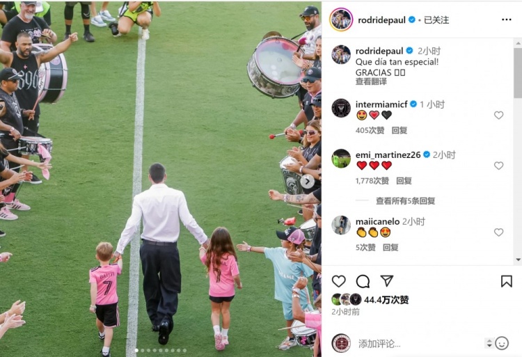 德保羅在邁阿密國際主場對陣辛辛那提FC的比賽前亮相,這位阿根廷球員社媒曬出照片,配文:“多么特別的一天!感謝大家?!?/p>