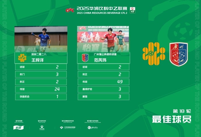 第18輪的另一場比賽中,深圳二零二八坐鎮(zhèn)主場對陣昆明城星。比賽第24分鐘,黃可祺右腳抽射被撲出,王梓洋跟進補射破門打破僵局;第37分鐘,王梓洋接到姜文璟送出的挑傳,在禁區(qū)內(nèi)右腳挑射梅開二度,最終幫助深圳二零二八2比0戰(zhàn)勝對手。