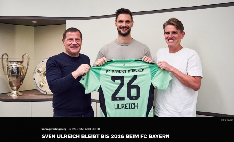 7月29日訊 拜仁官方消息,俱樂部與36歲門將烏爾賴希續(xù)約,球員將繼續(xù)在拜仁效力一個賽季。