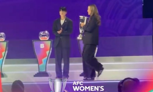 李夢(mèng)雯作為衛(wèi)冕冠軍中國(guó)女足的代表,帶著女足亞洲杯冠軍獎(jiǎng)杯出席了抽簽儀式!