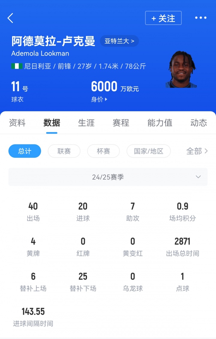 羅馬諾:國米4000萬+500萬浮動報價盧克曼,亞特蘭大堅持要更多