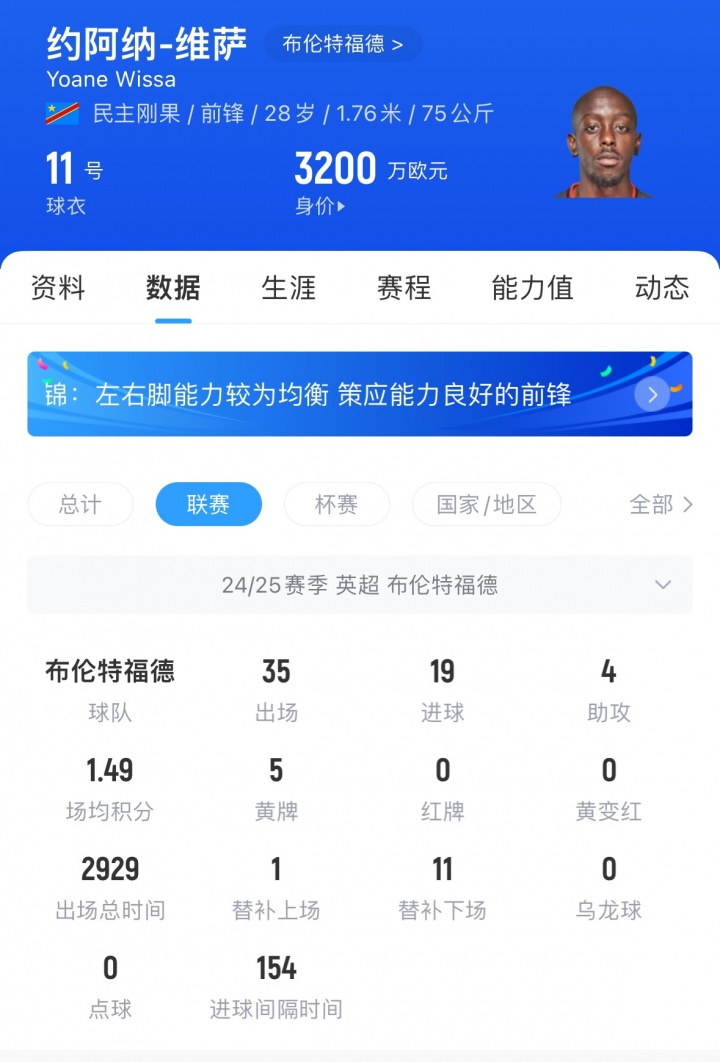 28歲的維薩還有1年合同,球員24-25賽季39場20球4助攻,德轉身價3200萬歐。