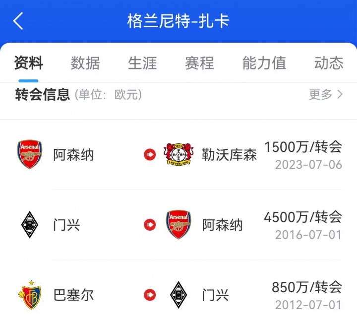 扎卡2023年以1500萬歐元從阿森納轉(zhuǎn)會至勒沃庫森,此前曾為阿森納效力7年,并一度擔(dān)任阿森納隊長。離開兩年后,瑞士中場重返英超。