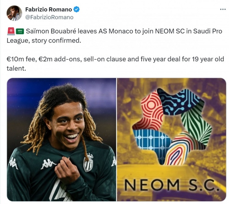 7月31日訊 據(jù)知名記者羅馬諾報(bào)道,沙特升班馬尼奧姆(新未來城體育)簽下摩納哥19歲中場布瓦布雷。