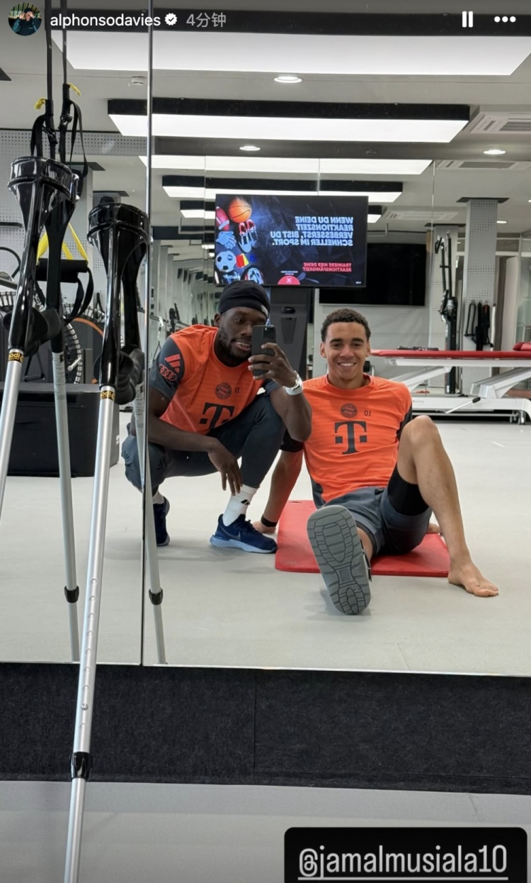 7月31日訊 阿方索-戴維斯今日更新社交媒體,他發(fā)布了一繞與隊(duì)友穆西亞拉一起進(jìn)行康復(fù)訓(xùn)練的照片。