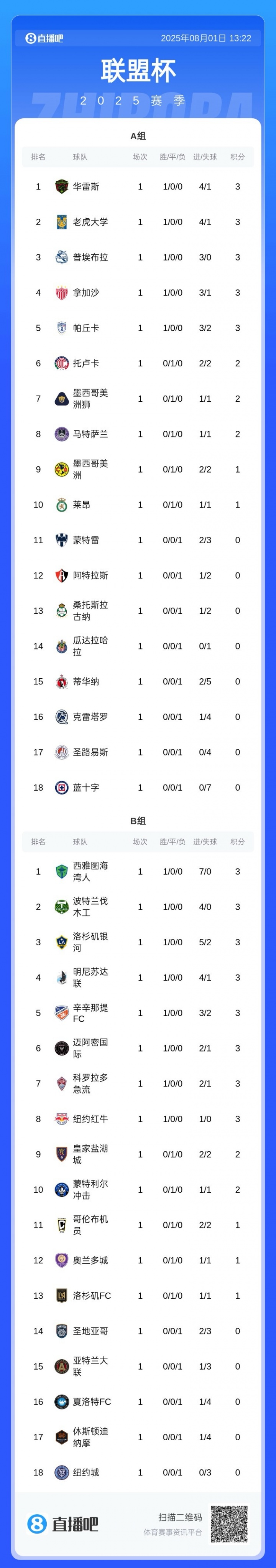 08月01日訊 聯(lián)盟杯小組賽首輪比賽全部結(jié)束。