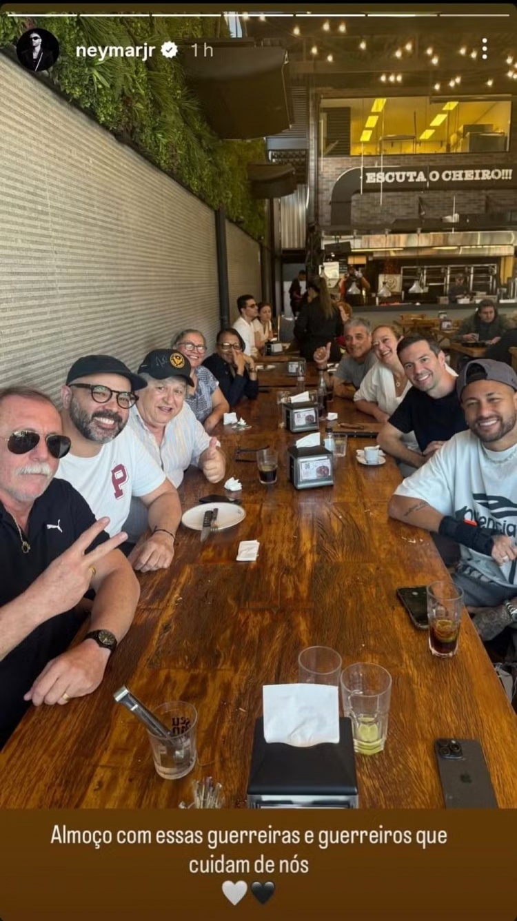 8月2日訊 在本星期五上午于貝利國王訓(xùn)練中心完成帶球訓(xùn)練后數(shù)小時,內(nèi)馬爾帶桑托斯的工作人員前往圣保羅的烤肉店吃午飯。