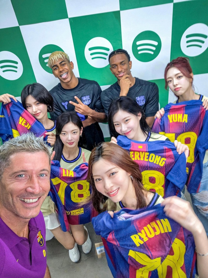 巴薩今夏韓國行,第一站首爾。巴薩球員與韓國女團(tuán)ITZY互動,互相模仿對方經(jīng)典pose。