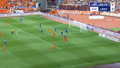 申花扳回一城!高天意任意球破門!第45+6分鐘,高天意主罰任意球直接射門,皮球轉向球門遠角,余鑒賢反應不及,云南玉昆3-1上海申花!↓