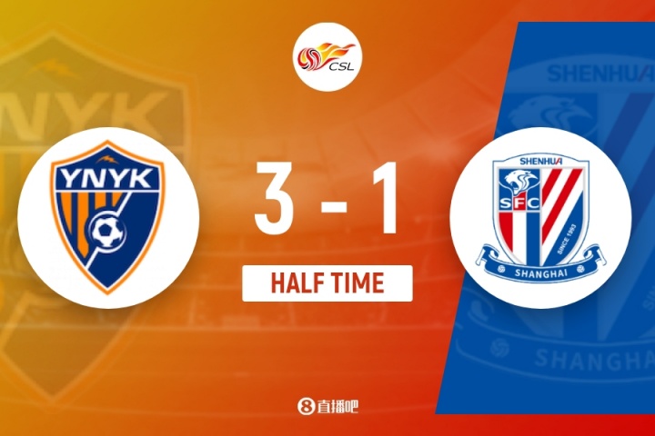 上半場比賽結束,上海申花客場暫時1-3落后云南玉昆。