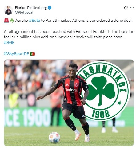 8月2日訊 據(jù)德國天空體育記者Florian Plettenberg報(bào)道稱,法蘭克福后衛(wèi)奧雷利奧-布塔即將加盟雅典帕納辛奈科斯。