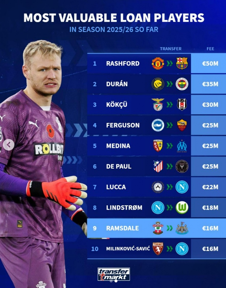 8月2日訊 德轉盤點了今年夏窗租借交易中球員身價榜,其中拉什福德居首,具體榜單如下: