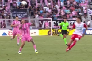 下半場(chǎng)補(bǔ)時(shí)6分鐘,第95分鐘,邁阿密左路角球開到禁區(qū)第一點(diǎn)被頂出,弧頂阿爾巴遠(yuǎn)射被門將神勇?lián)涑??!?/p>
