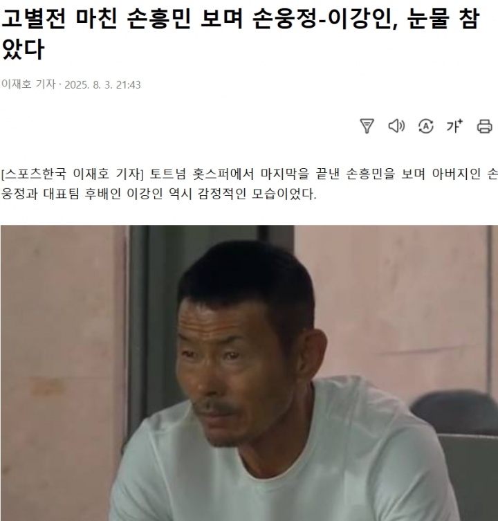 韓媒:父親孫雄正現(xiàn)場(chǎng)觀看孫興慜熱刺告別戰(zhàn),強(qiáng)忍淚水