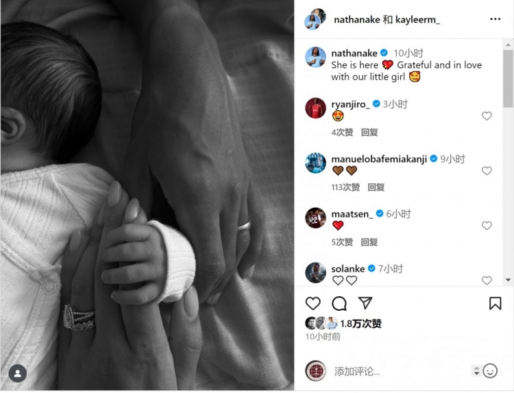 8月8日訊 曼城后衛(wèi)阿克更新社媒動(dòng)態(tài),宣布女兒出生。