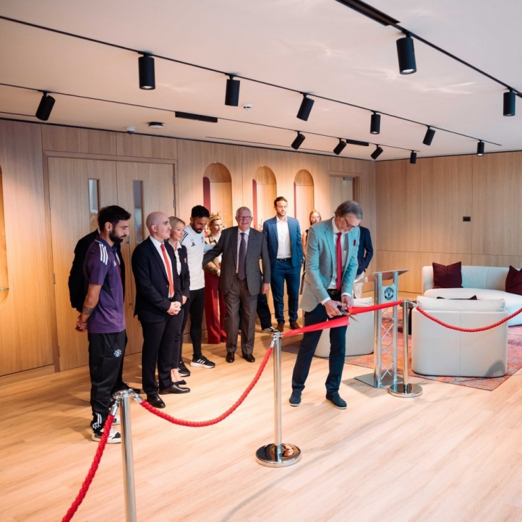 8月9日訊 曼聯(lián)官方更新社媒動態(tài),曬出拉特克利夫為卡靈頓基地男足一線隊新設(shè)施剪彩的照片。