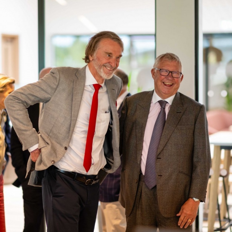 卡靈頓基地翻新,拉特克利夫為男足一線隊設(shè)施剪彩,曼聯(lián)功勛主帥弗格森也出席了儀式。