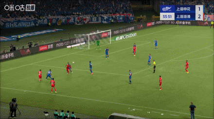 08月09日訊 申花vs海港第56分鐘,路易斯極具威脅的低射被顏駿凌撲出,海港逃過一劫。